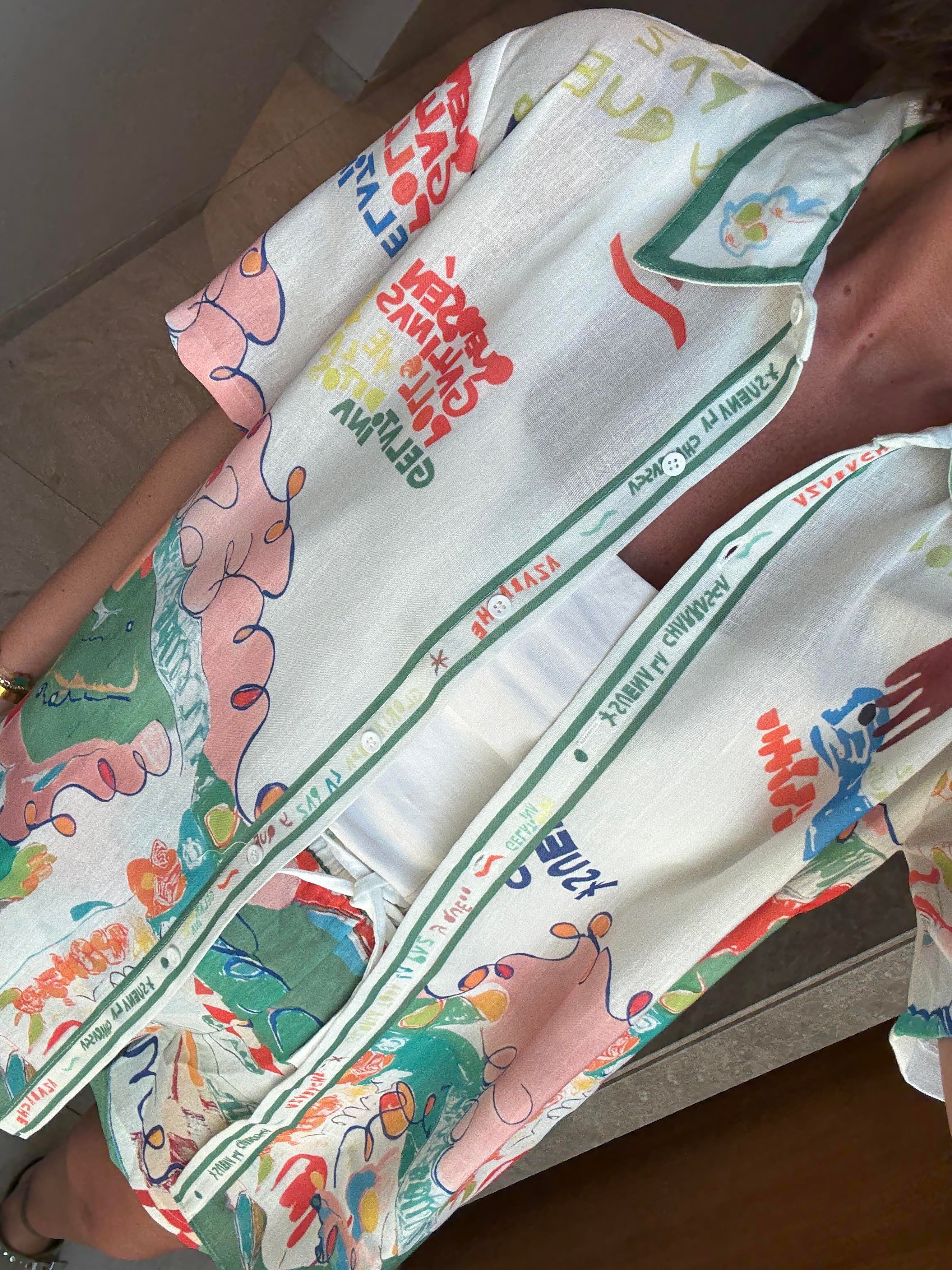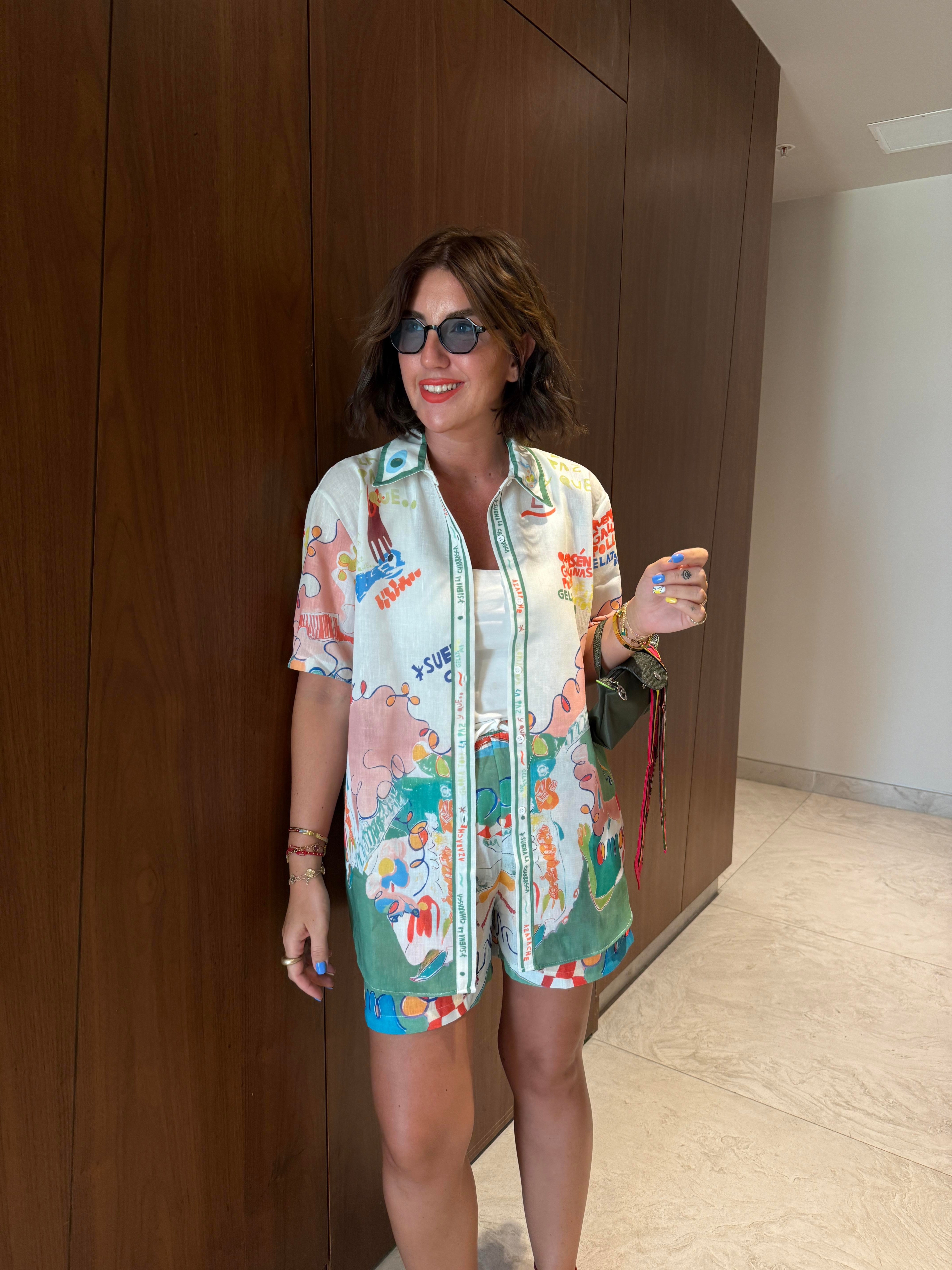 Yeşil Desenli , Şort & Gömlek Takım