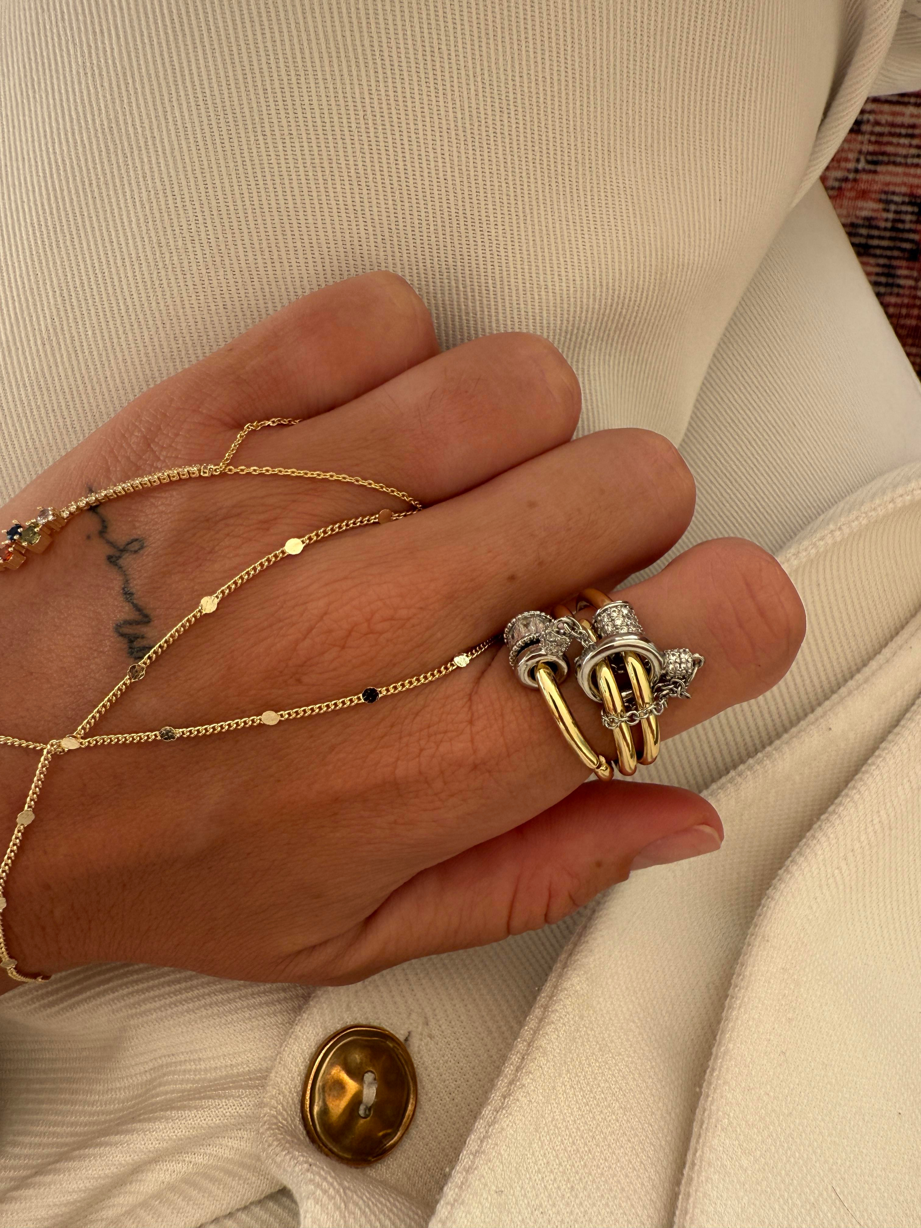 Zirkon Taş Detaylı , 3 lü Gold Yüzük