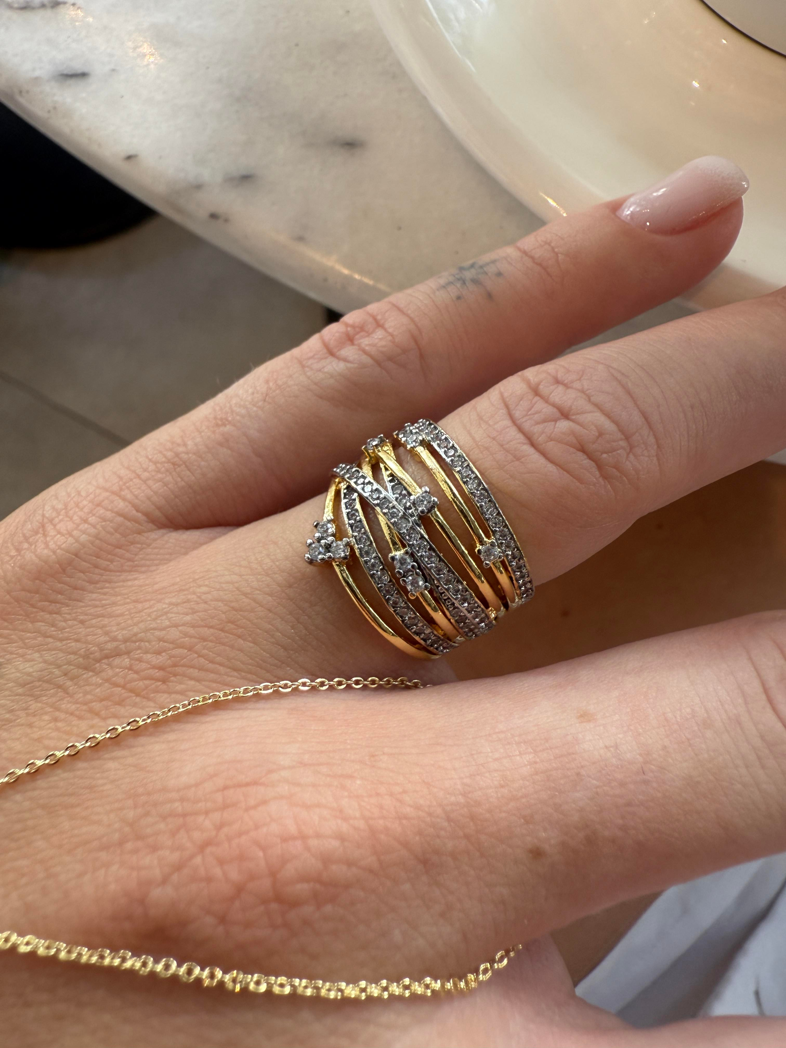 Zirkon Taşlı , Gold , Çapraz Geçişli Yüzük