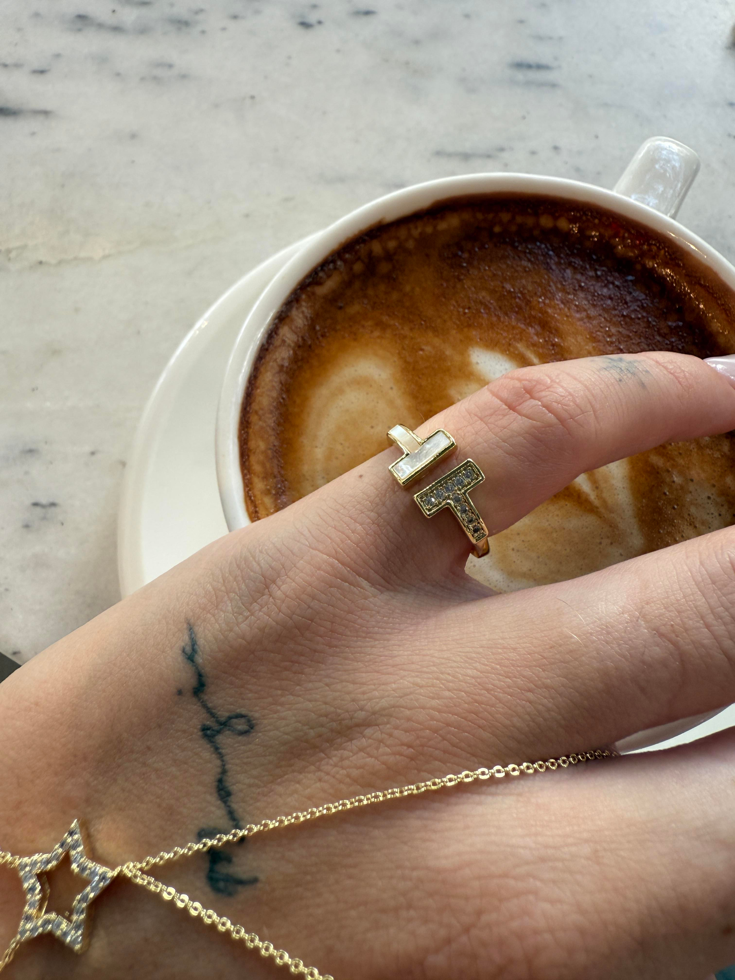 Zirkon Taşlı , Gold , Sedef T Yüzük (zyn44yuz-7514)