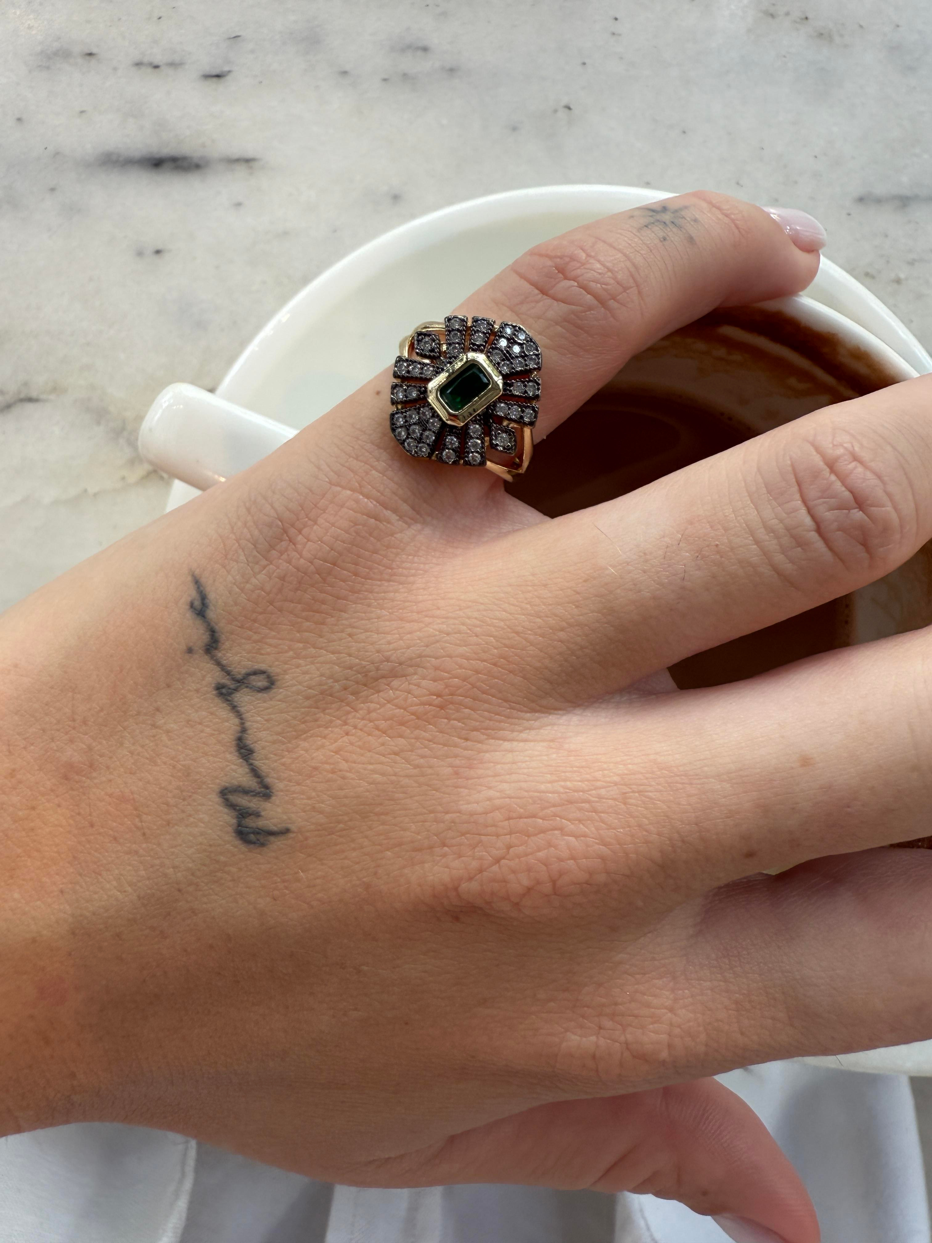 Zirkon Taşlı , Gold , Yeşil Zümrüt Yüzük