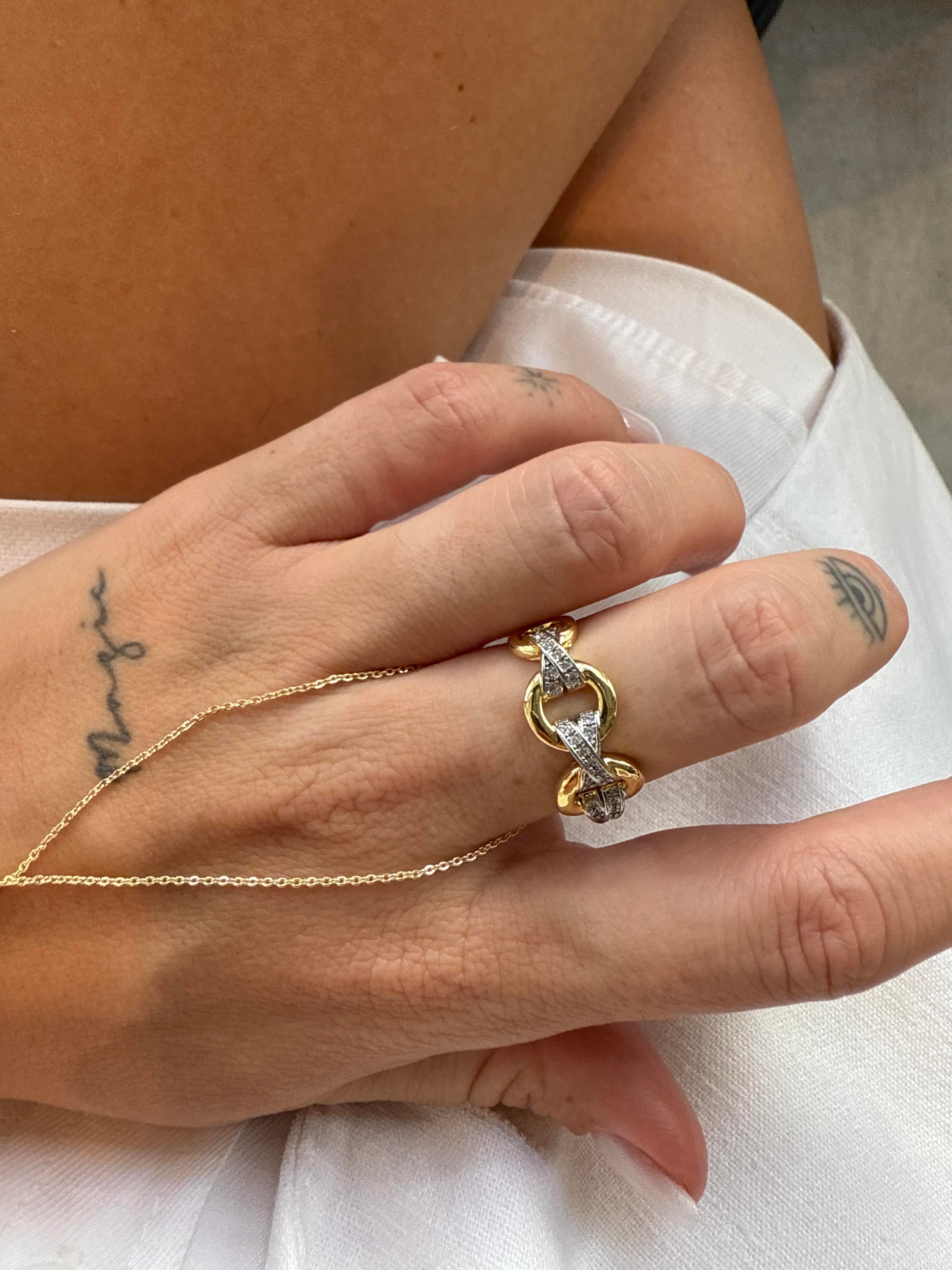 Zirkon Taşlı , Gold , Zincir Bağlı Yüzük (ziy44ykk-7517)