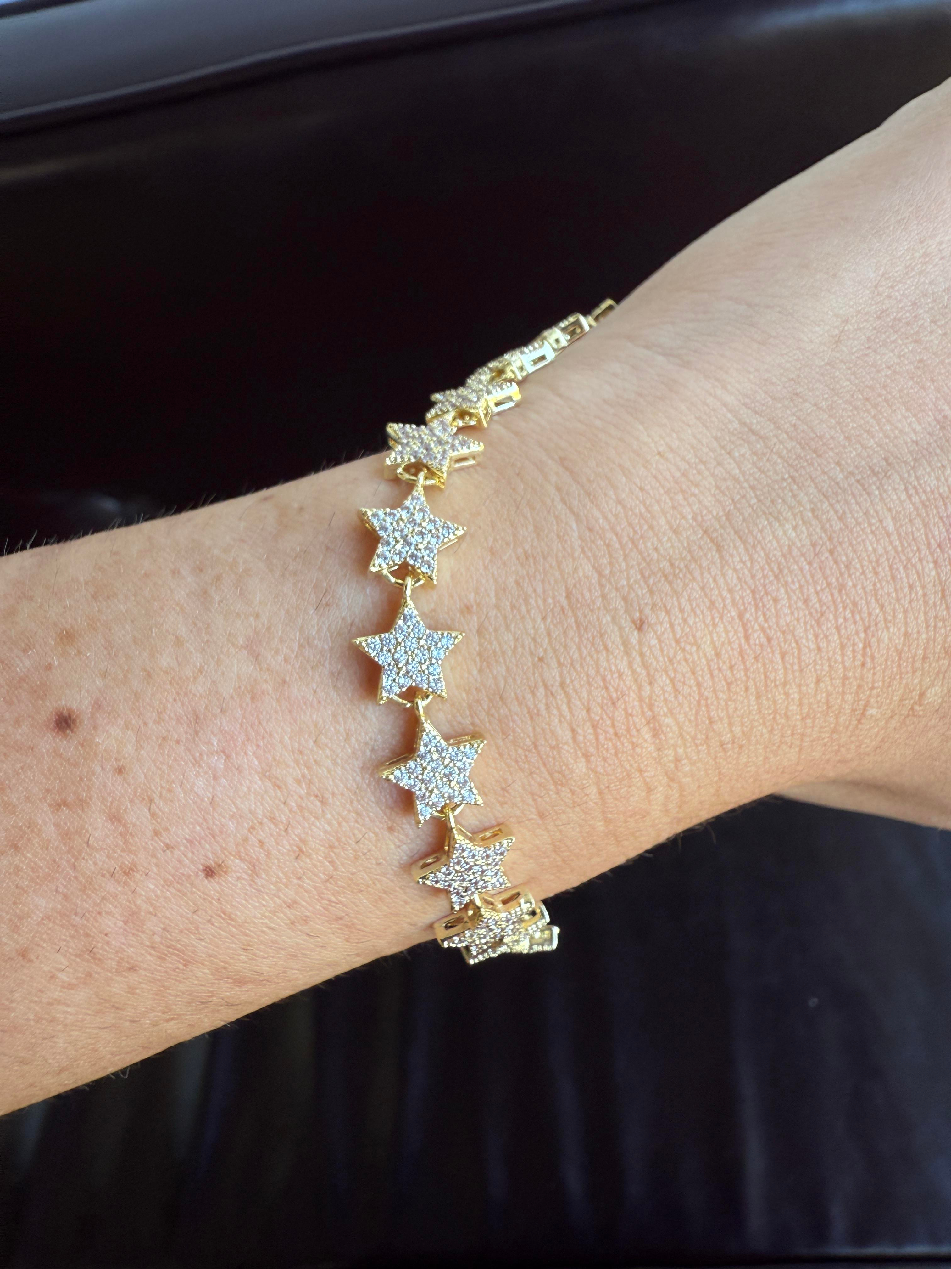 Zirkon Taşlı , Yıldızlı , Tasarım Gold Bileklik